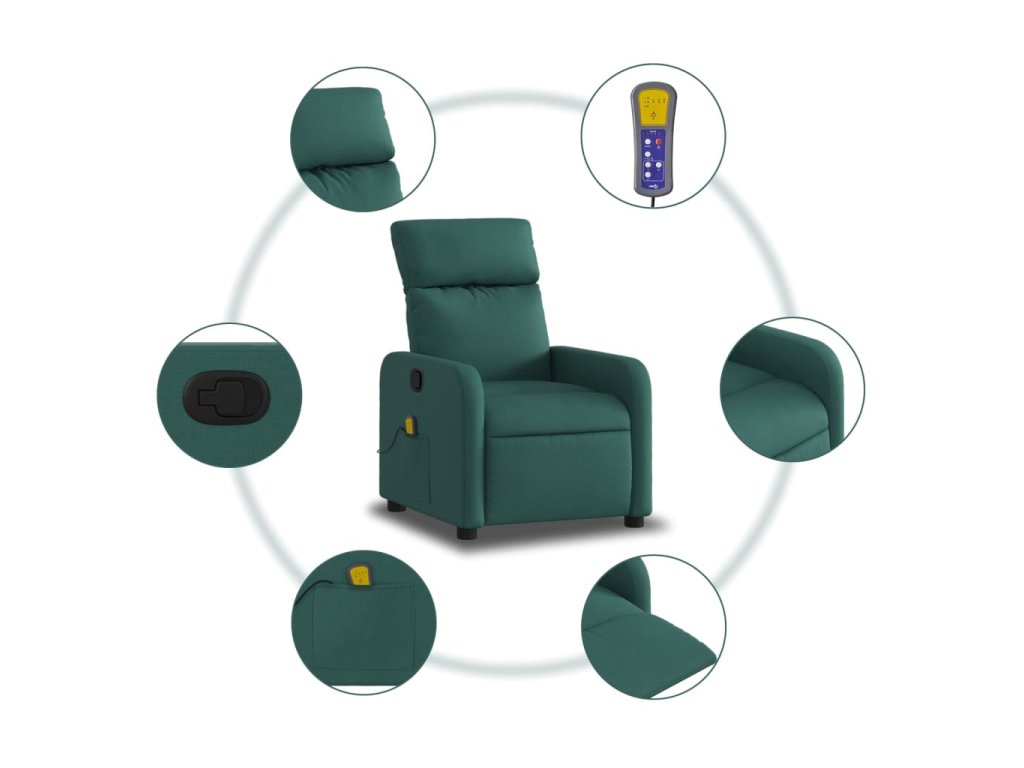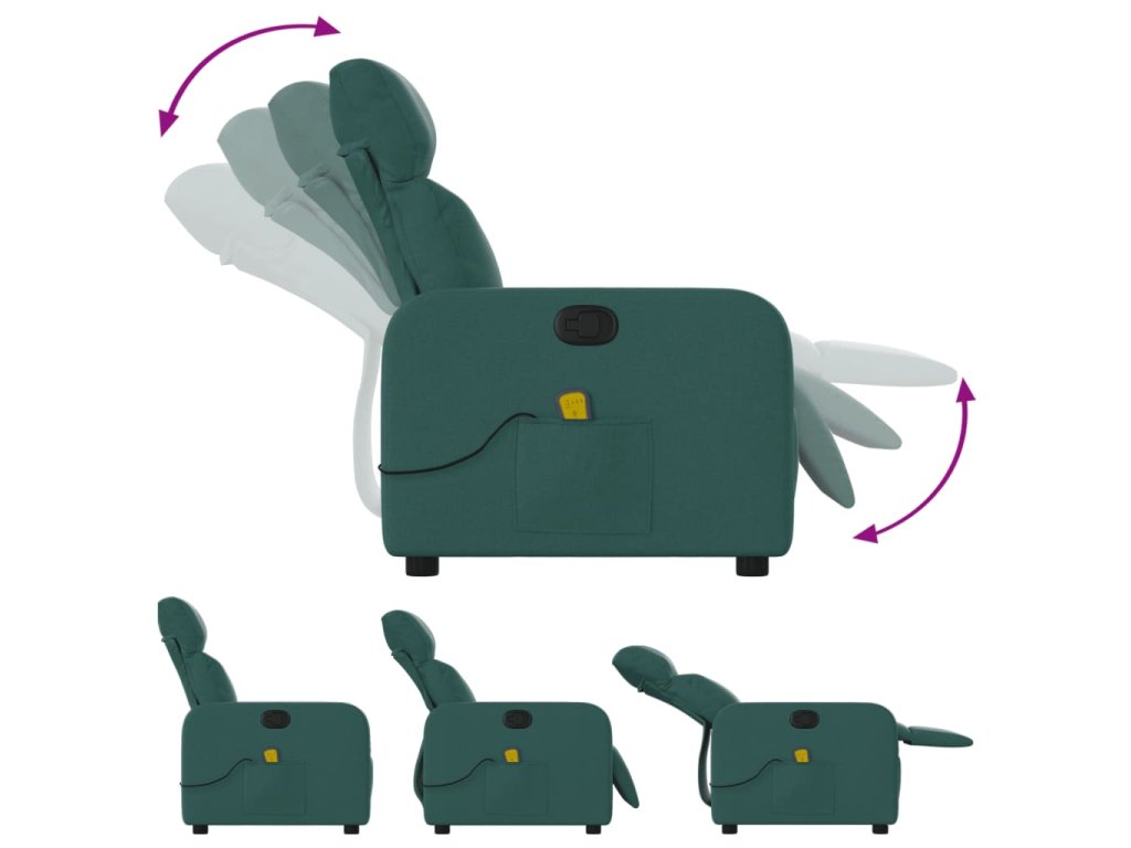 Multidom Sklápacie masážne kreslo tmavozelené látka