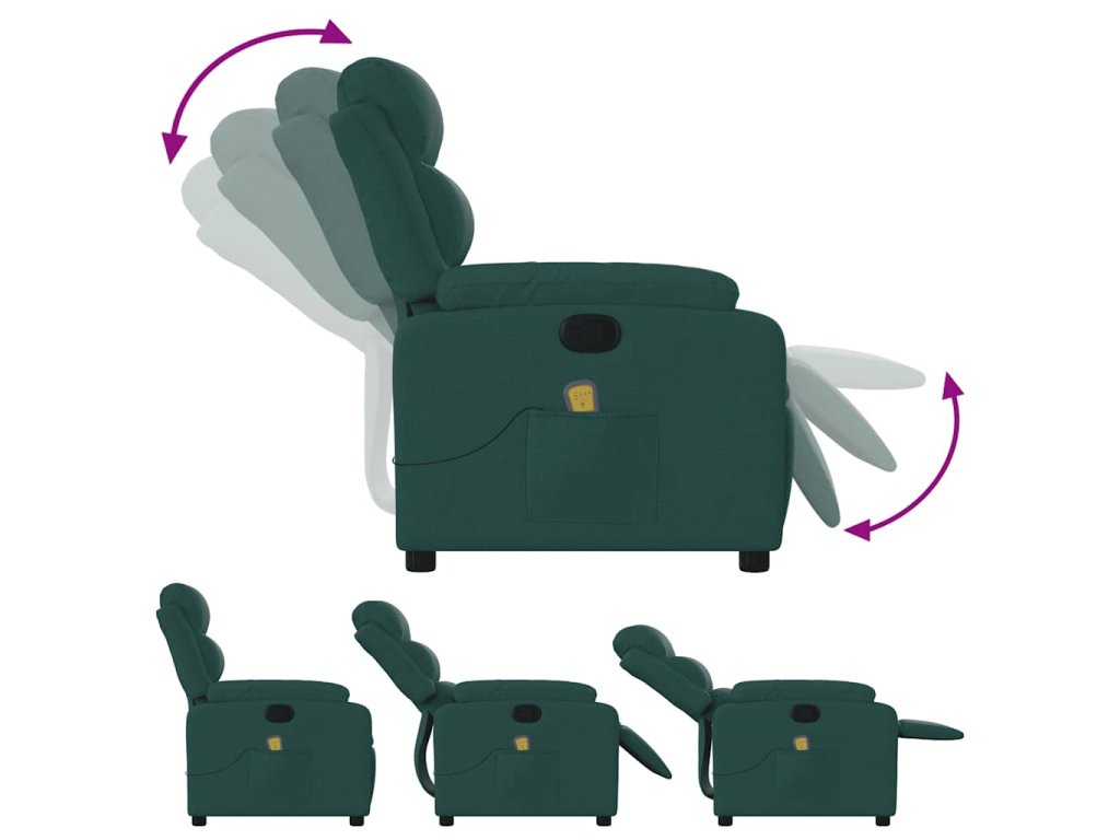 Multidom Sklápacie masážne kreslo tmavozelené látka