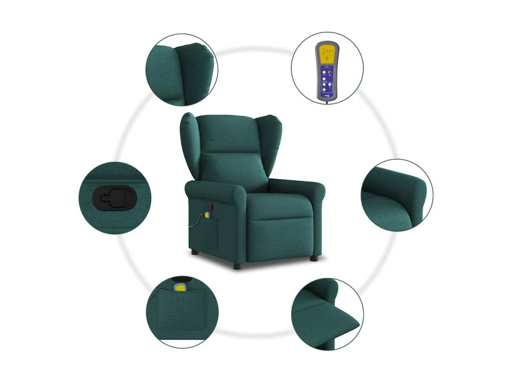 Multidom Sklápacie masážne kreslo tmavozelené látka