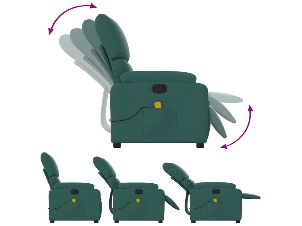 Multidom Sklápacie masážne kreslo tmavozelené látka