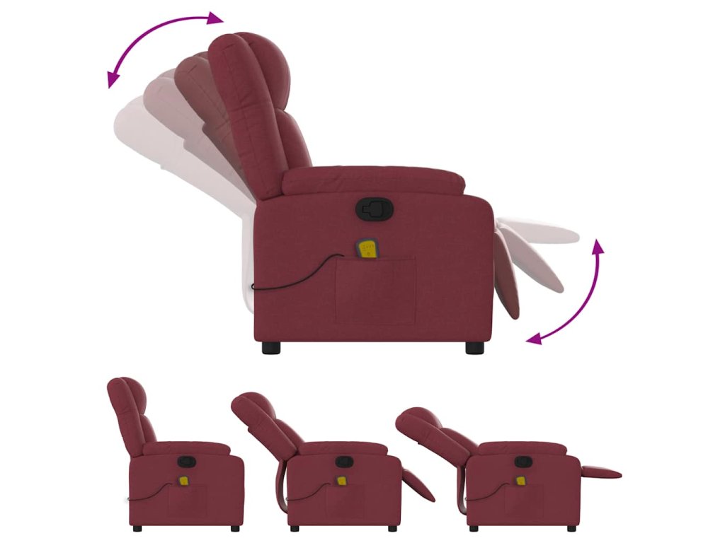 Multidom Sklápacie masážne kreslo vínovo-červené látka