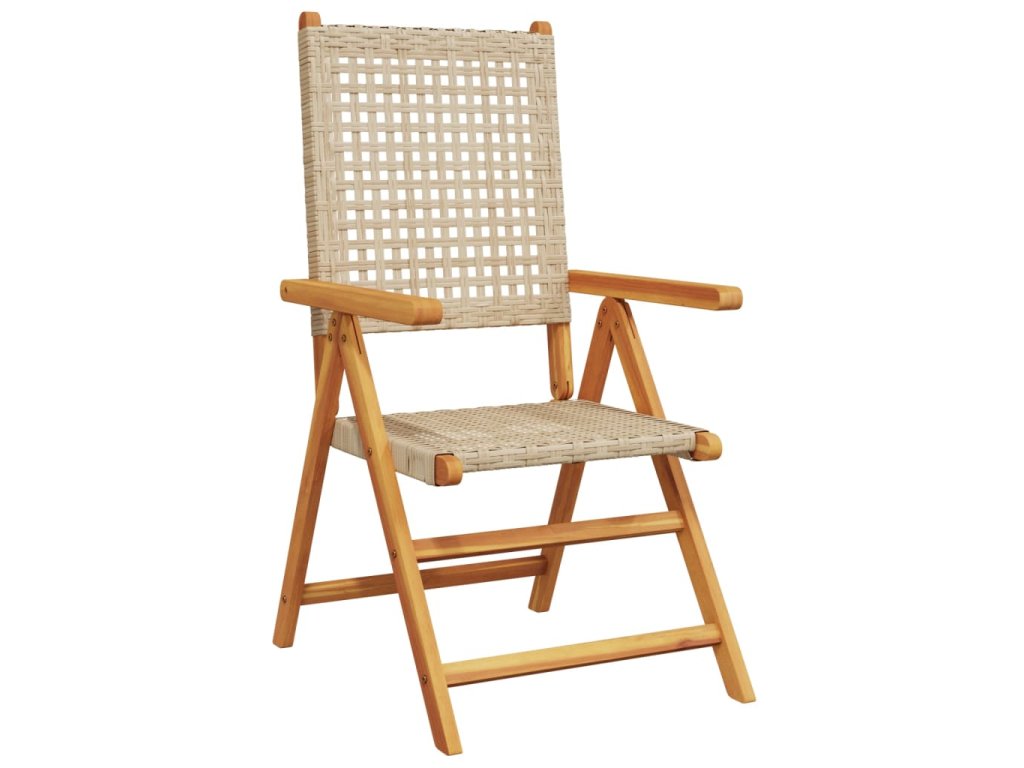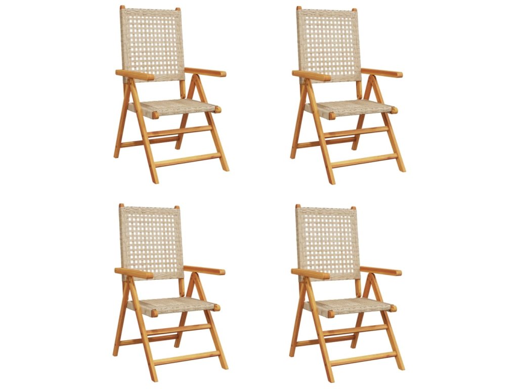 Multidom Sklápacie záhr. stoličky 4 ks béžové polyratan a masívne drevo