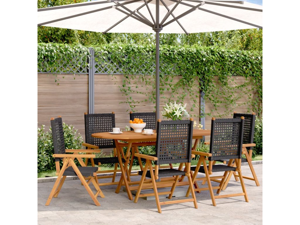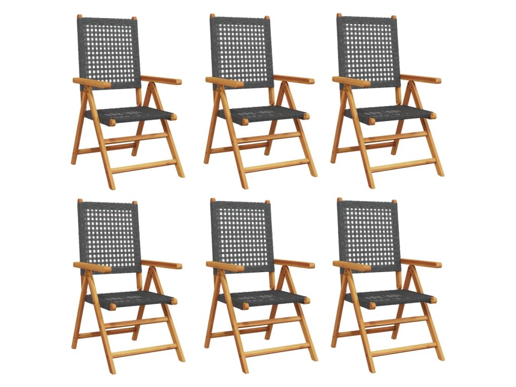 Multidom Sklápacie záhr. stoličky 6 ks čierne polyratan a masívne drevo