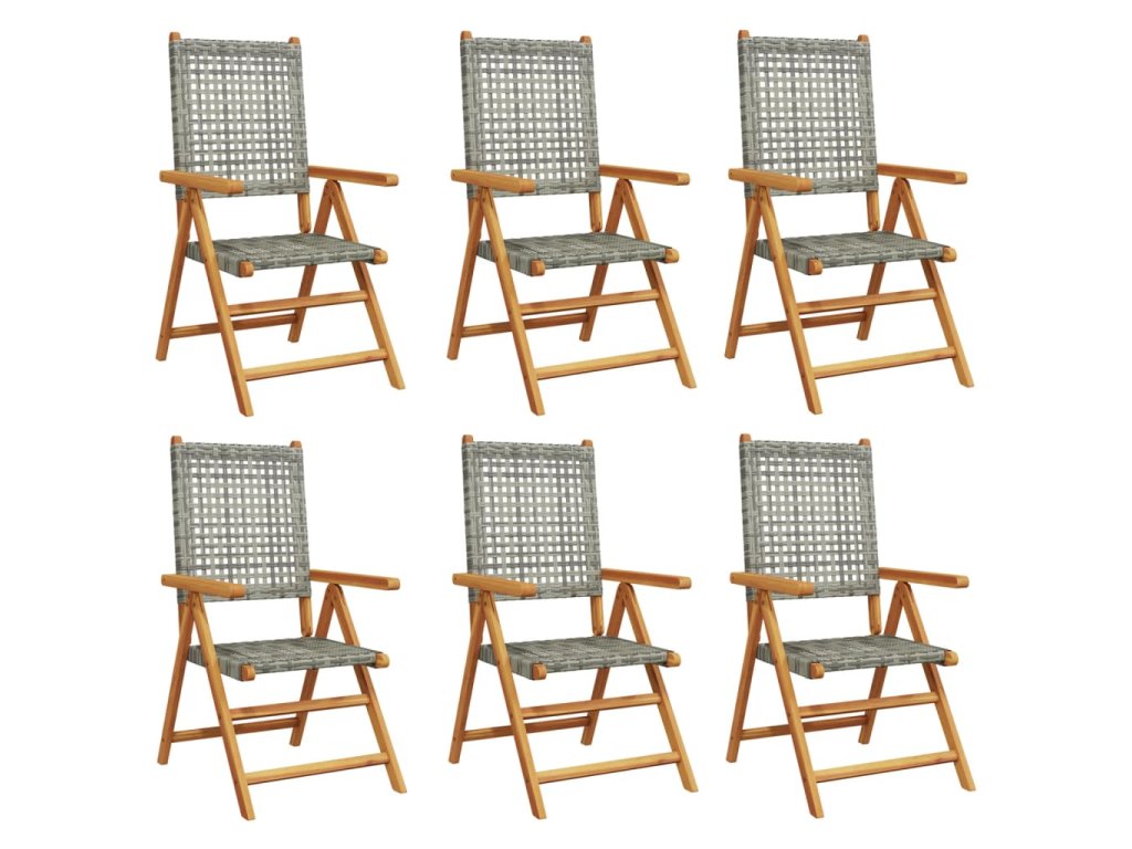 Multidom Sklápacie záhr. stoličky 6 ks sivé polyratan a masívne drevo