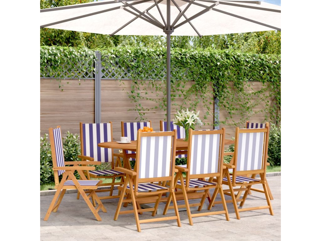 Multidom Sklápacie záhr. stoličky 8ks modrá a biela látka+masívne drevo