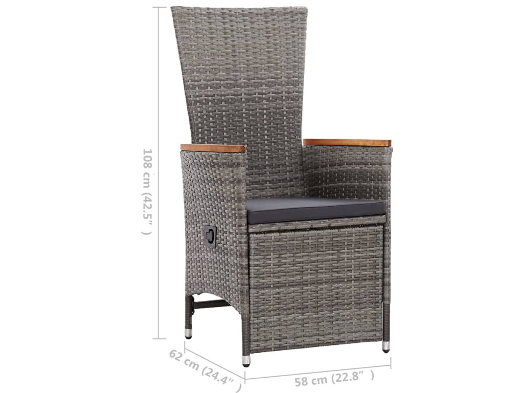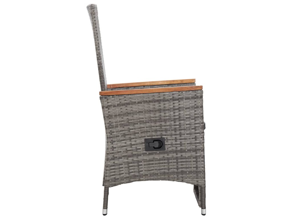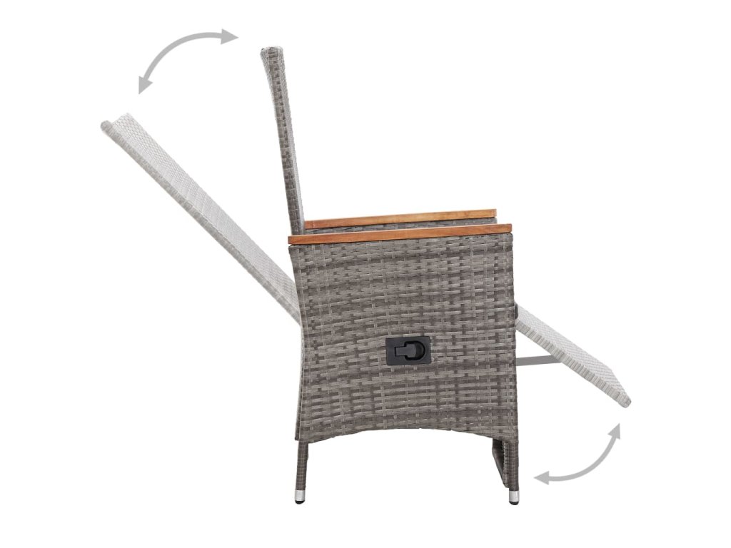 Vonkajšie sedenie je vyrobené z vodeodolného PE ratanu, ktorý je odolný voči poveternostným vplyvom, ľahko sa čistí, je odolný voči opotrebovaniu a vhodný na každodenné použitie. Vďaka oceľovým rámom s práškovým povrchom sú pevné a odolné. Lakťové opierky sú vyrobené z akáciového dreva, tropického tvrdého dreva, ktoré im prináša rustikálne kúzlo. Vďaka nastaviteľnému dizajnu a mechanizmu zdvíhania pomocou plynového piestu je možné operadlo a opierku na nohy nastaviť tak, aby bolo pre vás sedenie čo najpohodlnejšie. Dotknutím sa tlačidla na boku sa operadlo sklopí a súčasne sa pohne aj opierka, čím dosiahnete polohu vhodnú na ležanie. Vďaka ľahkej konštrukcii sa záhradné kreslá jednoducho presúvajú.
