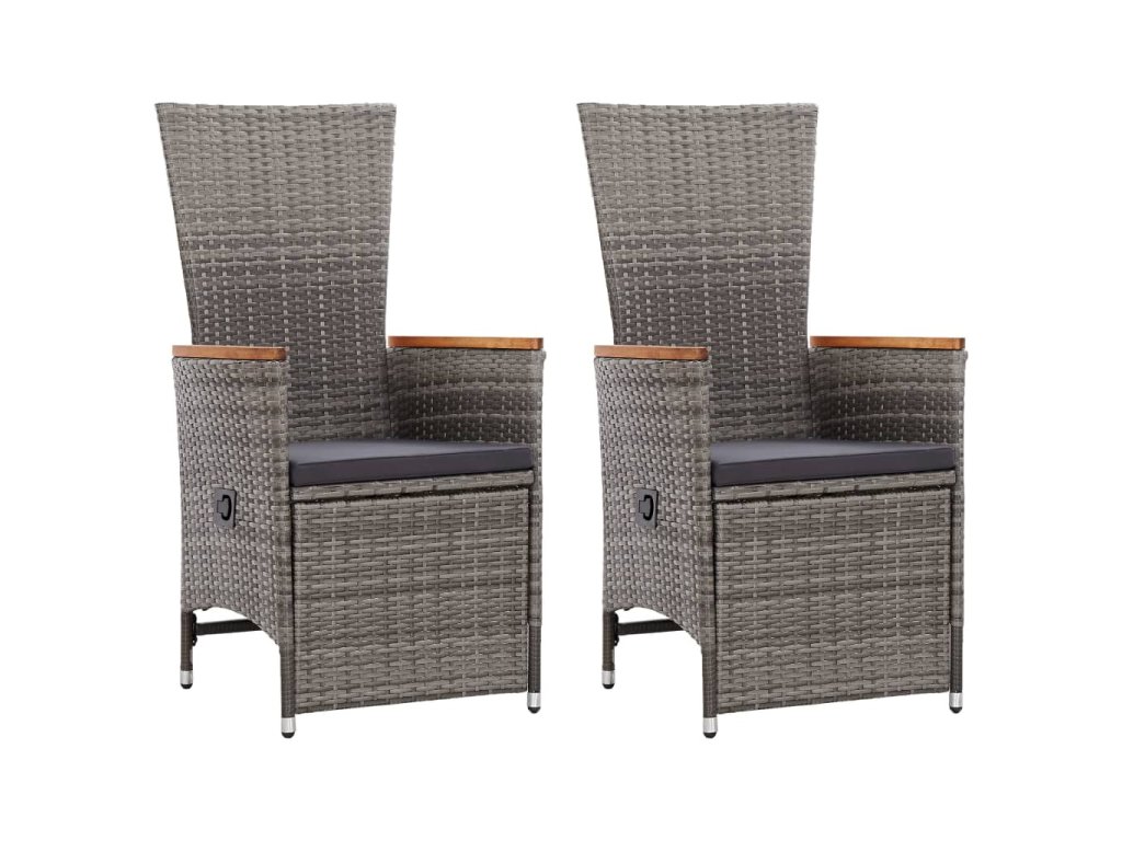 Multidom Sklápacie záhradné kreslá 2 ks s podložkami sivé polyratanové