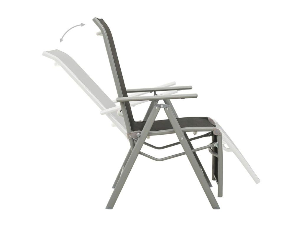 Vďaka hliníkovému rámu s práškovým nástrekom je vonkajšia stolička robustná, odolná a vydrží vám dlhé roky používania. Je vybavená nastaviteľným operadlom, ktoré je možné sklopiť do 7 polôh, takže si vždy nájdete tú najpohodlnejšiu pozíciu. Sedadlo je pohodlné vďaka priedušnému textilénu.