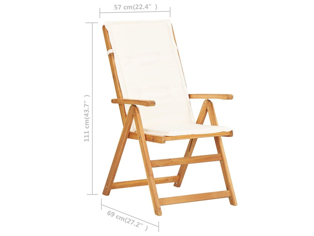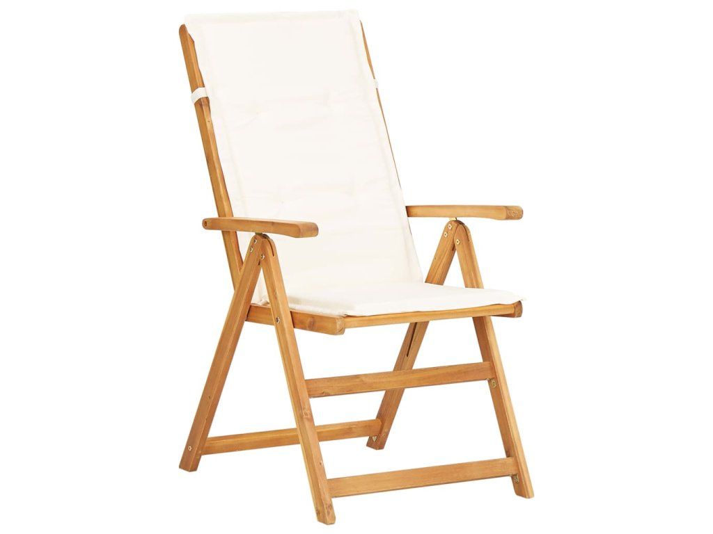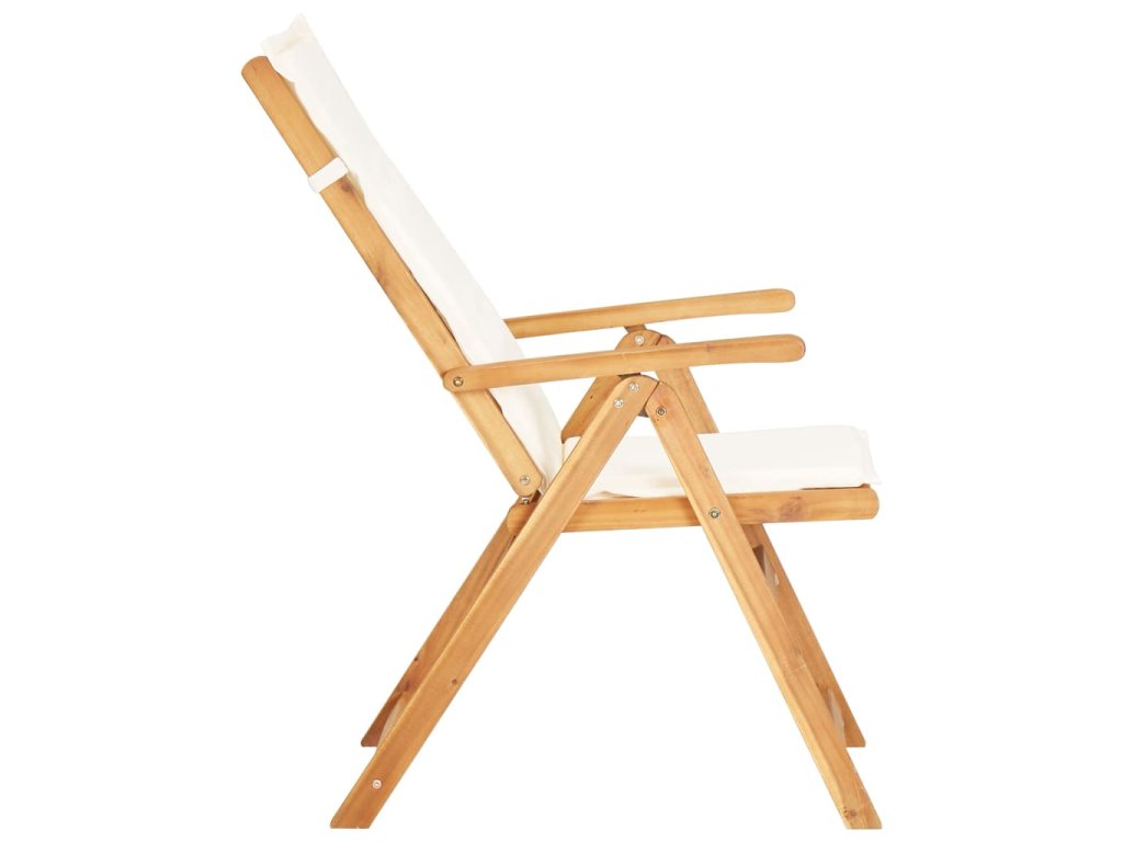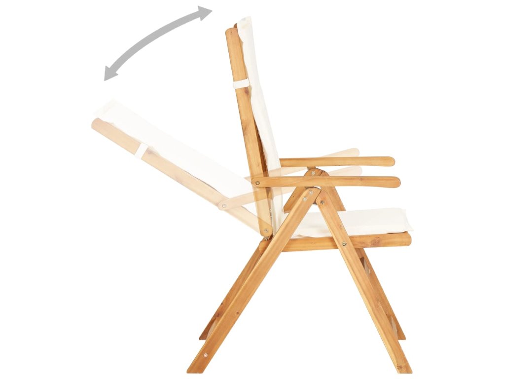 Naša sada stoličiek je vyrobená z masívneho akáciového dreva, tropického tvrdého dreva, ktoré je odolné voči poveternostným vplyvom a veľmi trvácne. Vankúš z textílie zvyšuje pohodlie počas sedenia. Operadlo stoličky sa dá nastaviť do 5 pozícií, takže si vždy nájdete tú najpohodlnejšiu polohu. Ľahký dizajn uľahčuje presúvanie stoličiek po dome. Okrem toho sa dá stolička sklopiť, aby sa ušetril priestor, keď sa nepoužíva.