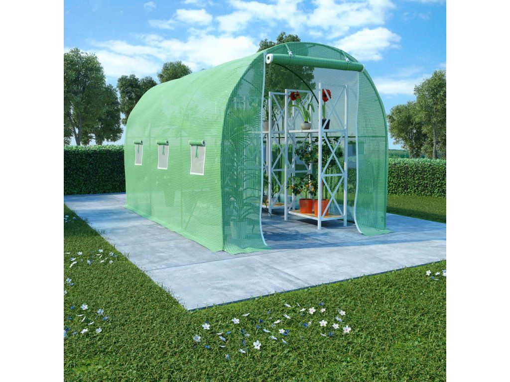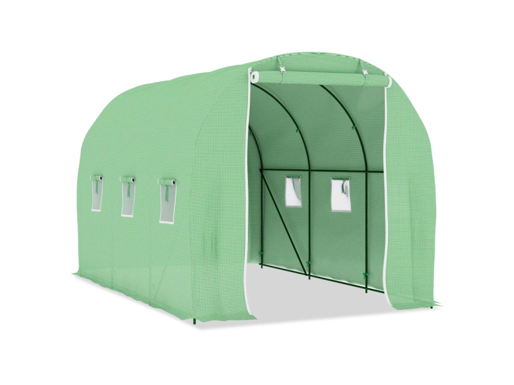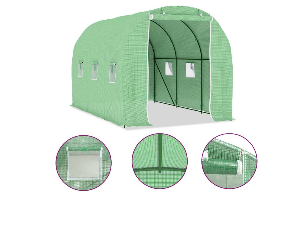 Tento skleník predstavuje skvelý spôsob, ako ochrániť rastliny pred vetrom, dažďom, slnkom či pred vtákmi. Skleník je vyrobený z PE sieťoviny s hustotou 140 g/m², ktorá je o 25 % ťažšia než bežné sieťoviny od iných výrobcov. Vďaka tomu dokáže ešte lepšie minimalizovať nepriaznivé vplyvy vonkajšieho prostredia. Fóliovník má pevný pozinkovaný oceľový rám, ktorý je odolný voči hrdzi a ktorý prináša mimoriadnu stabilitu. Skleník vetracie okienka s rozmermi 38x38 cm a jedny dvere s rozmermi 100x185 cm.