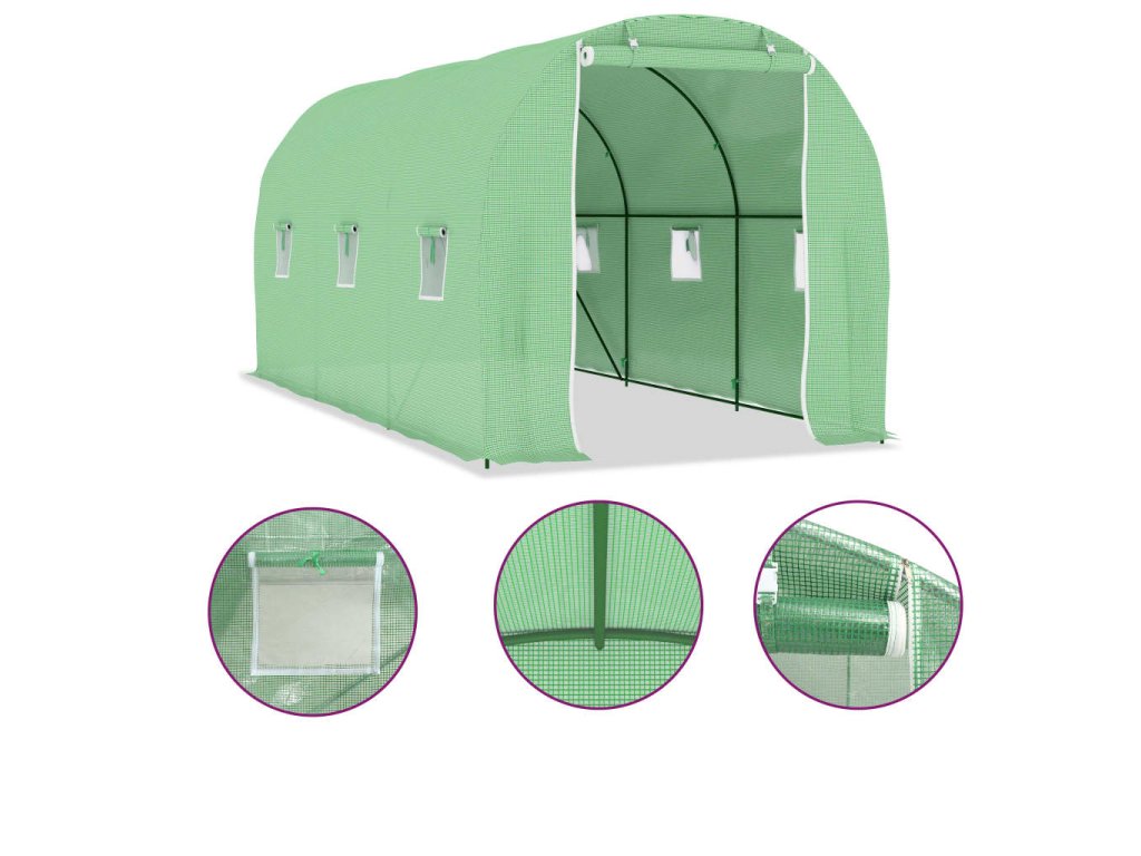 Tento skleník predstavuje skvelý spôsob, ako ochrániť rastliny pred vetrom, dažďom, slnkom či pred vtákmi. Skleník je vyrobený z PE sieťoviny s hustotou 140 g/m², ktorá je o 25 % ťažšia než bežné sieťoviny od iných výrobcov. Vďaka tomu dokáže ešte lepšie minimalizovať nepriaznivé vplyvy vonkajšieho prostredia. Fóliovník má pevný pozinkovaný oceľový rám, ktorý je odolný voči hrdzi a ktorý prináša mimoriadnu stabilitu. Skleník vetracie okienka s rozmermi 38x38 cm a jedny dvere s rozmermi 100x185 cm.