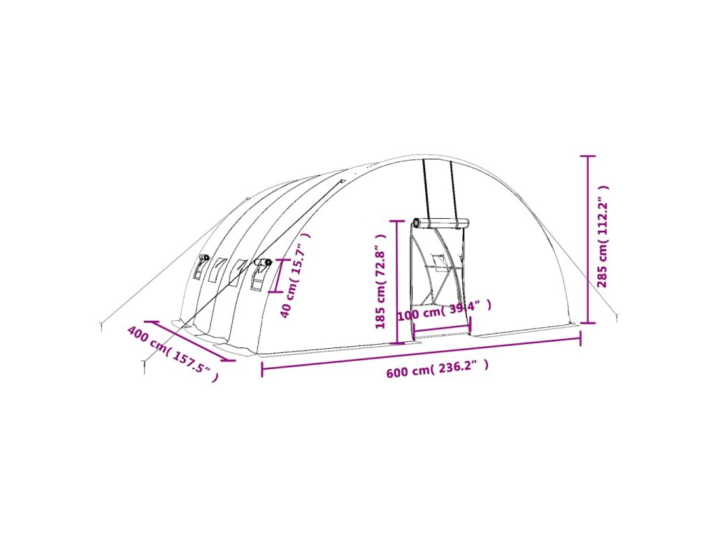 Multidom Skleník s oceľovým rámom zelený 24 m² 6x4x2,85 m