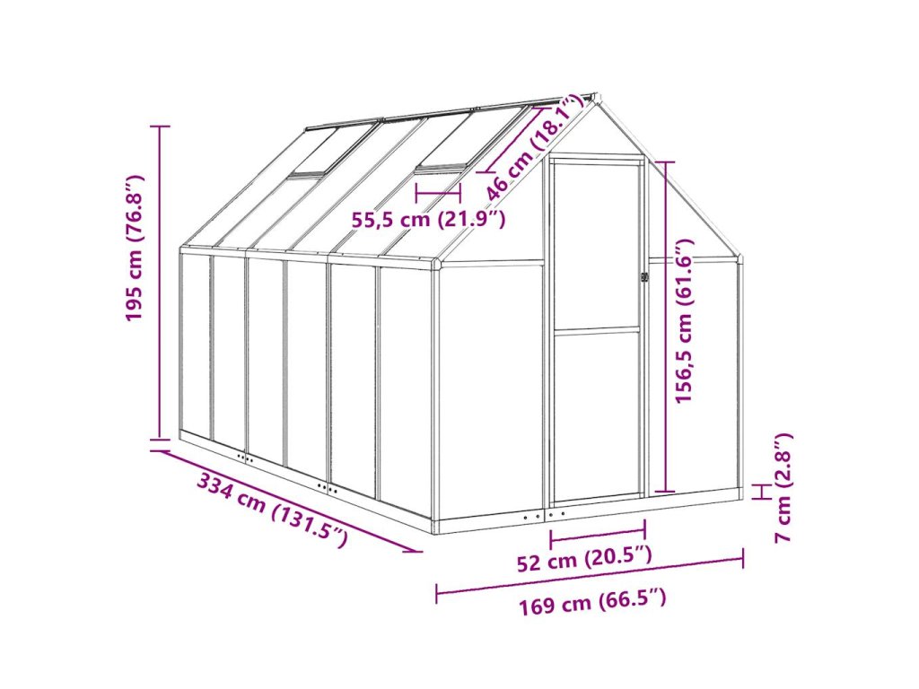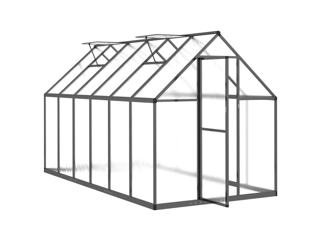 - Robustný materiál odolný voči poveternostným vplyvom: Rám skleníka je vyrobený z hliníka odolného voči hrdzi a poveternostným vplyvom, ktorý zaručuje vysokú odolnosť voči vetru a stabilitu. Bočné panely sú vyrobené z polykarbonátových dosiek, ktoré sú odolné voči UV žiareniu, ľahké, trvácne a jednoducho sa udržiavajú a zároveň dokážu odolávať vetru a snehu.