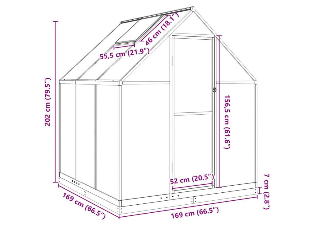 - Praktický dizajn: Rám skleníka obsahuje 6 cm vysoký hliníkový spodný profil, ktorý sa dá jednoducho zakopať do zeme, čím sa ušetria ďalšie náklady na stavanie základov. Jeho súčasťou je aj prídavná 7 cm základňa z pozinkovanej ocele, ktorá zvyšuje stabilitu konštrukcie.