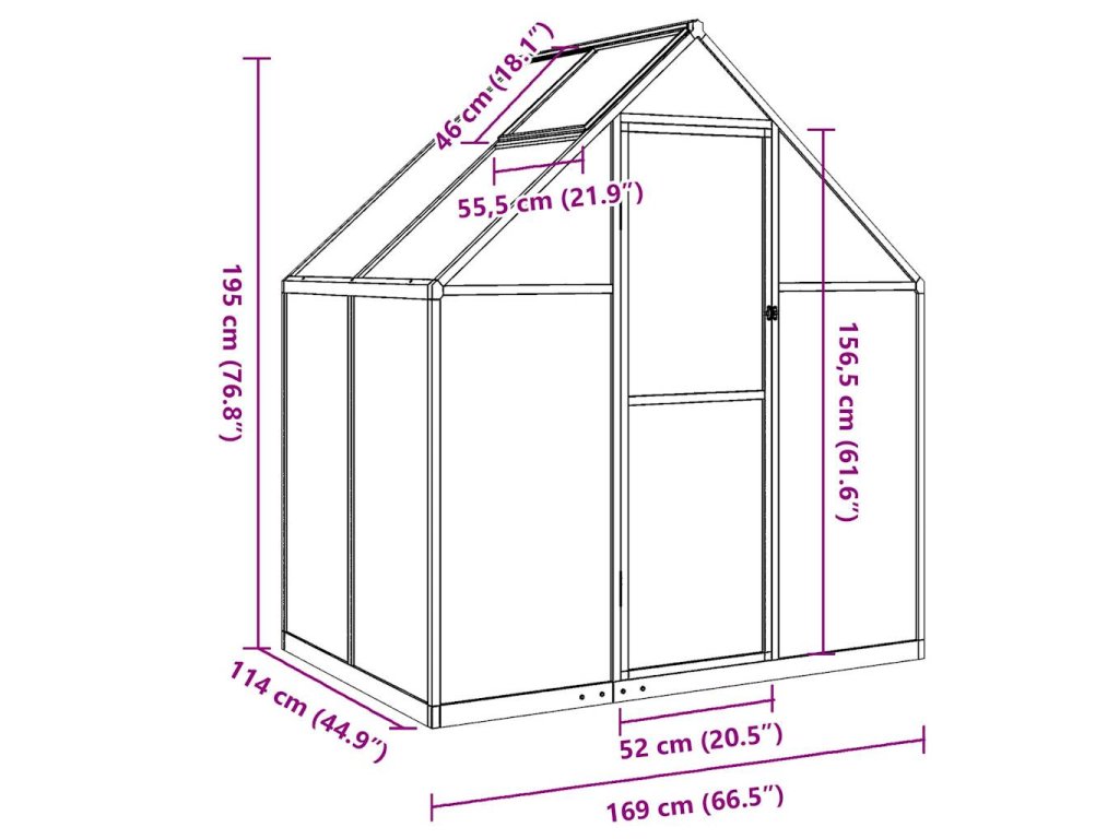 - Praktický dizajn: Rám skleníka obsahuje 6 cm vysoký hliníkový spodný profil, ktorý sa dá jednoducho zakopať do zeme, čím sa ušetria ďalšie náklady na stavanie základov.