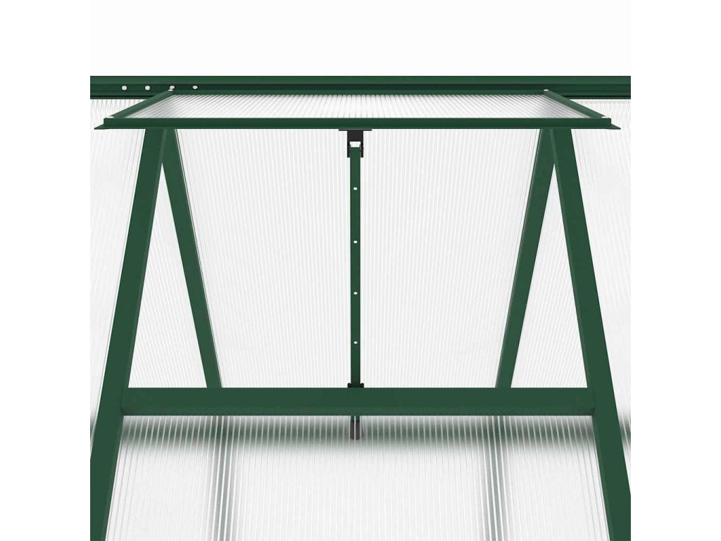 - Robustný rám odolný voči poveternostným vplyvom: Rám skleníka je vyrobený z hliníka odolného voči korózii a poveternostným vplyvom, ktorý zaručuje vysokú odolnosť voči vetru a stabilitu.