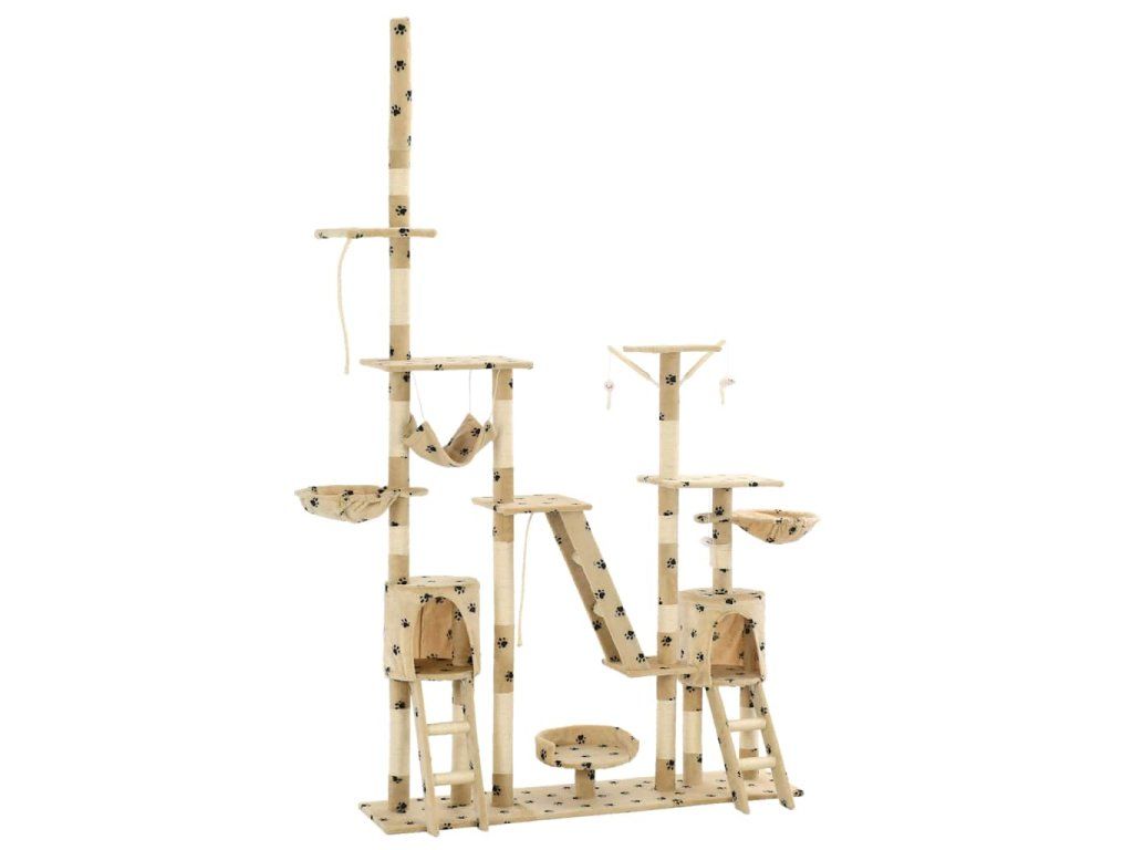 Multidom Škrabadlo pre mačky so sisalovými stĺpikmi 230-250 cm béžové s labkami
