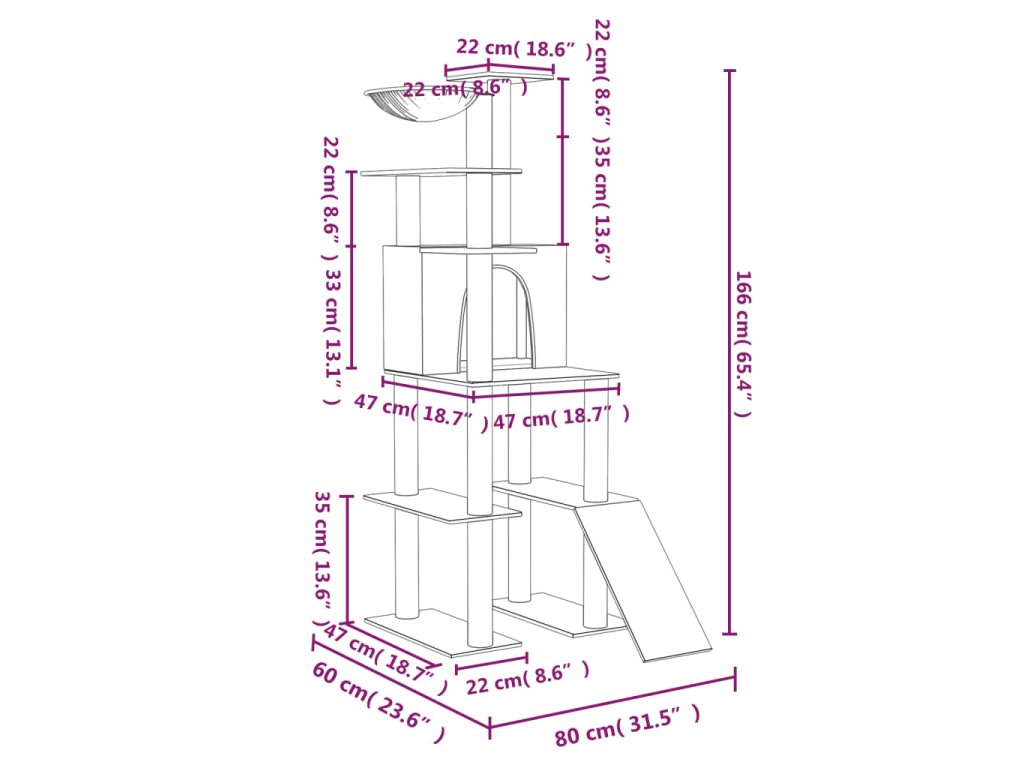 - Komplexná veža pre mačky: Viacúrovňový nábytok pre mačky je navrhnutý s 1 domčekom, 1 ležadlom, 1 rebríkom a plošinami, ktoré vašim mačkám poskytujú dokonalé miesto, kde môžu liezť, sedieť, škrabať sa, schovávať sa a tiež relaxovať.