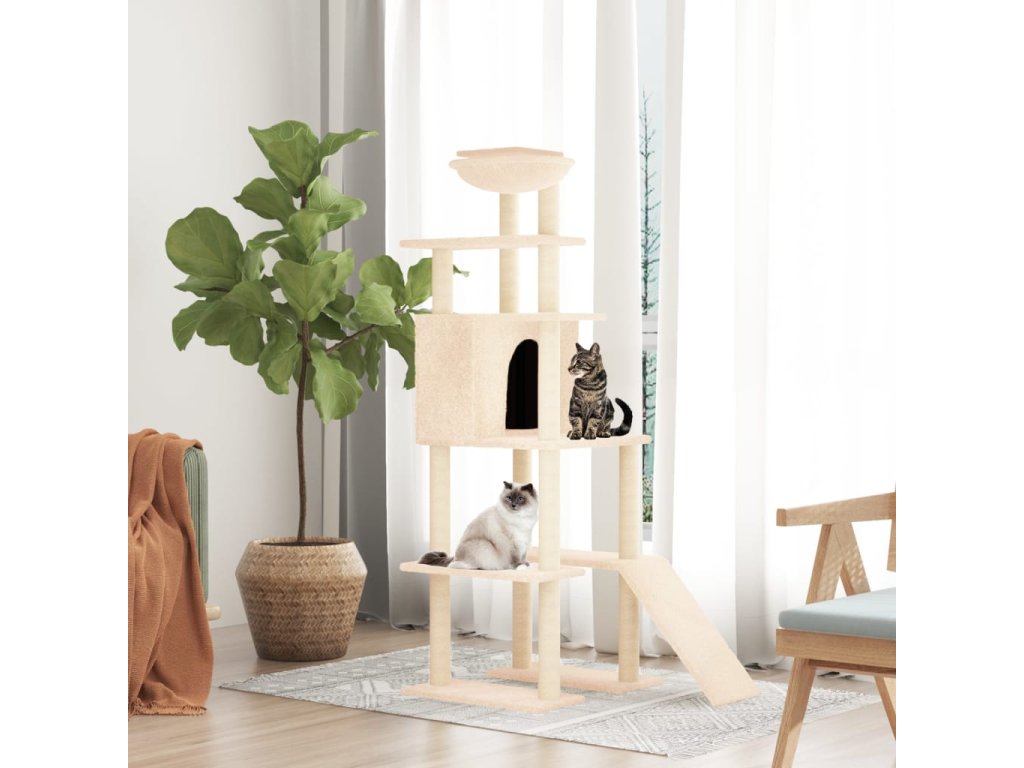 Multidom Škrabadlo pre mačky so sisalovými stĺpikmi krémové 166 cm