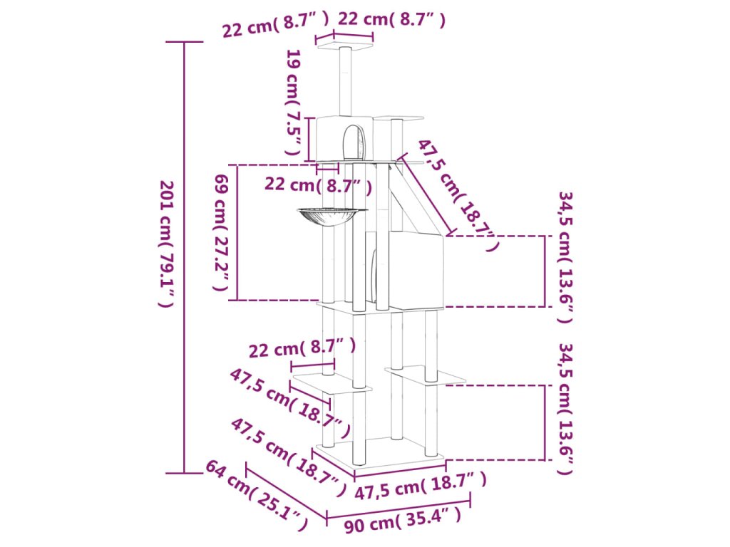 Vďaka tomuto mačaciemu stromom zažijú vaši domáci miláčikovia dokonalý luxus. Vaše mačky si na ňom budú môcť užívať škrabanie, šplhanie, vysedávanie, schovávanie a oddychovanie.