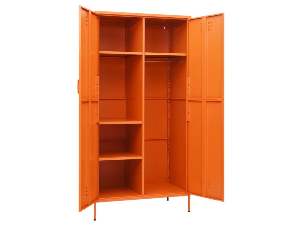 Táto skriňa na oblečenie je vyrobená z ocele, vďaka čomu je odolná a ľahko sa čistí. Táto skriňa má 4 nastaviteľné police a veľkú priehradku s vešiakovou tyčou, ktoré vám ponúkajú dostatok úložného priestoru nielen pre vaše dlhšie oblečenie, ale aj pre poskladané oblečenie alebo doplnky, ako sú svetre, džínsy, čiapky, kabelky atď.