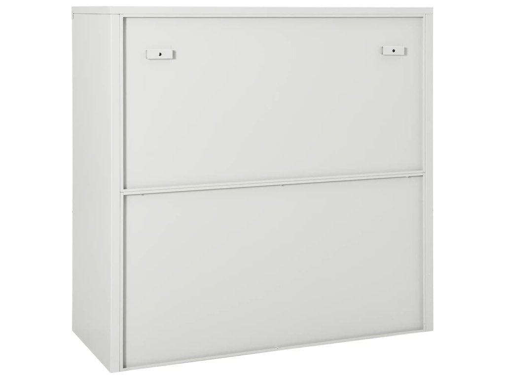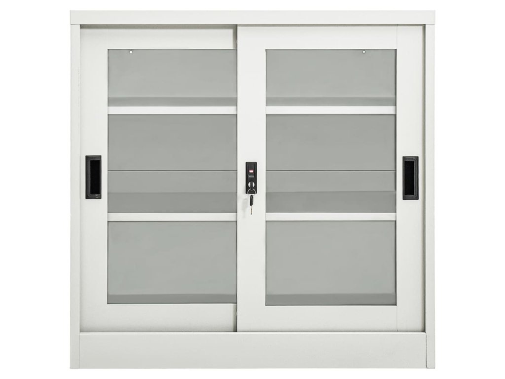 Úložná skriňa je vyrobená z ocele a tvrdeného skla, takže je mimoriadne pevná a odolná. Posuvné dvere zaisťujú plynulé otváranie a zatváranie. Vďaka 2 nastaviteľným policiam je skriňa vhodná na ukladanie spisov rôznych veľkostí. Kartotéka je vybavená aj zámkom, ktorý chráni vaše osobné dokumenty pred neželanými hosťami. Skrine s posuvnými dverami sú vhodné do miestností s obmedzeným množstvom priestoru alebo malými uličkami, v ktorých nie je možné použiť skrine s krídlovými dverami.