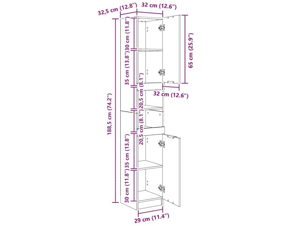 - Rozmery: 32 x 34 x 188,5 cm (Š x H x V)