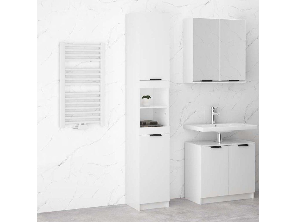 Multidom Skrinka do kúpeľne lesklá biela 32x34x188,5 cm spracované drevo