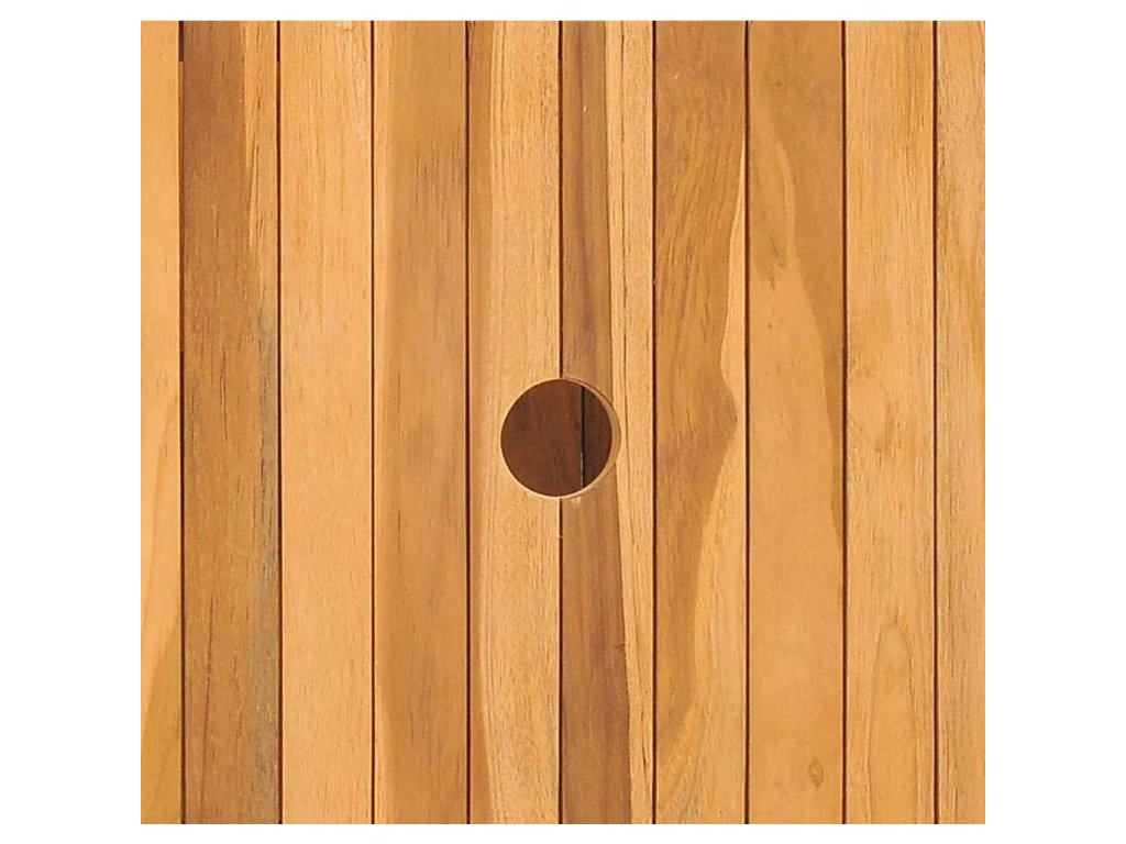 - Masívne tíkové drevo: Masívne tíkové drevo je krásny prírodný materiál. Bolo vyzreté, umelo vysušené a jemne obrúsené, čo mu dalo veľmi hladký vzhľad. Teakové drevo je známe svojou výnimočnou pevnosťou a odolnosťou voči poveternostným vplyvom.