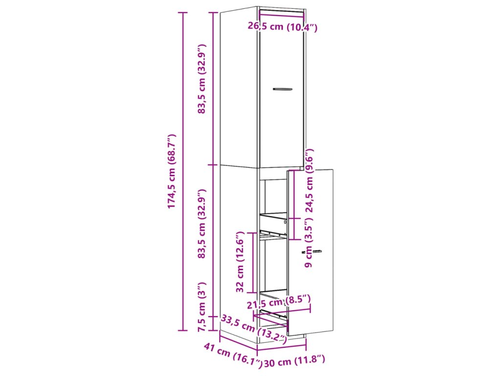 - Celkové rozmery: 30x 41 x 174,5 cm (Š x H x V)