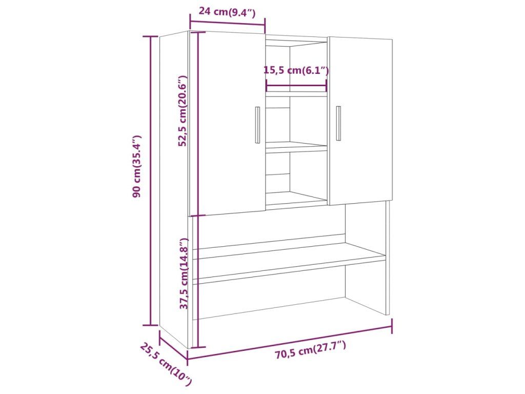 - Rozmery hornej skrinky: 70,5 x 25,5 x 90 cm (Š x H x V)
