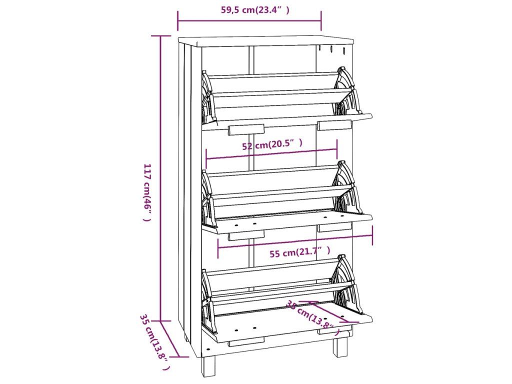 Je vyrobená z masívneho borovicového dreva, vďaka čomu je stabilná a pevná. Má tri výklopné zásuvky, ktoré poskytujú dostatok priestoru na uloženie obuvi a udržiavajú topánky bez prachu. S týmto praktickým organizérom vás už nebudú otravovať topánky, ktoré vám zavadzajú na podlahe.