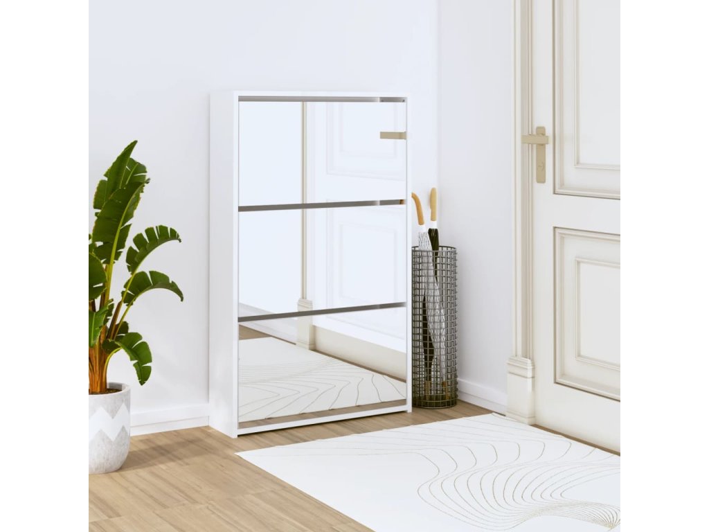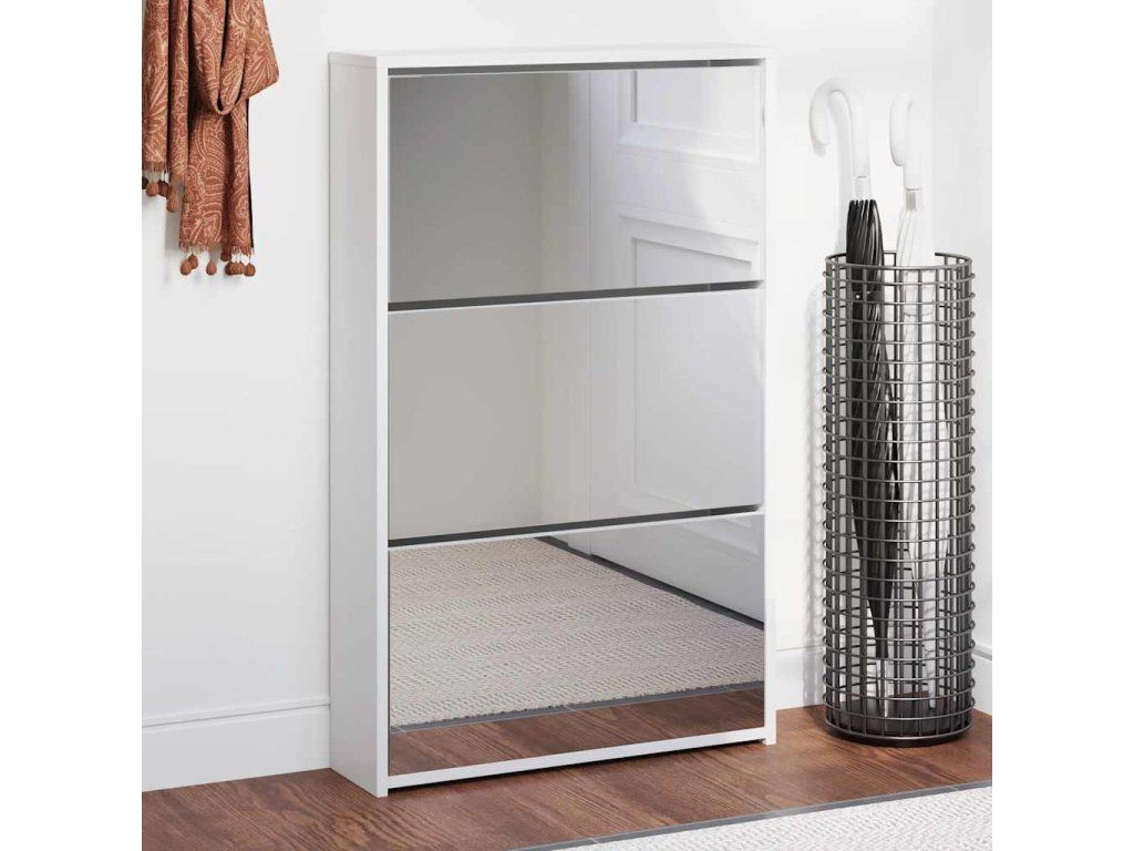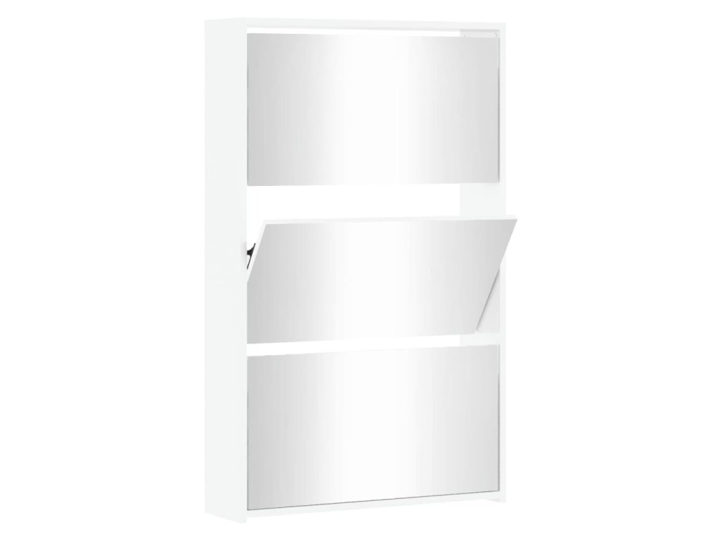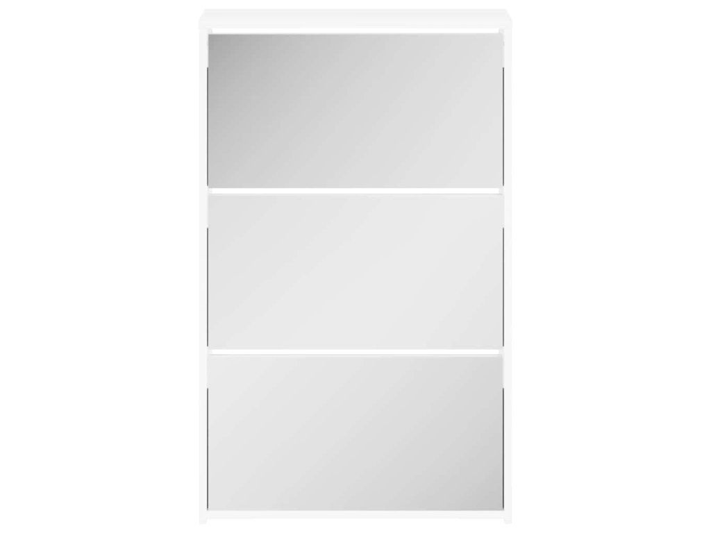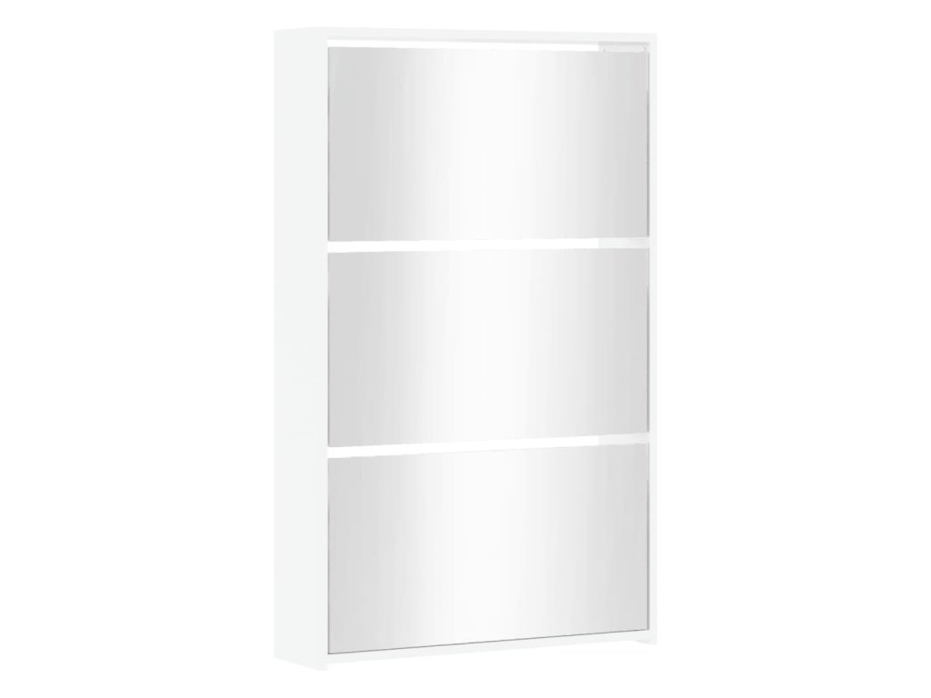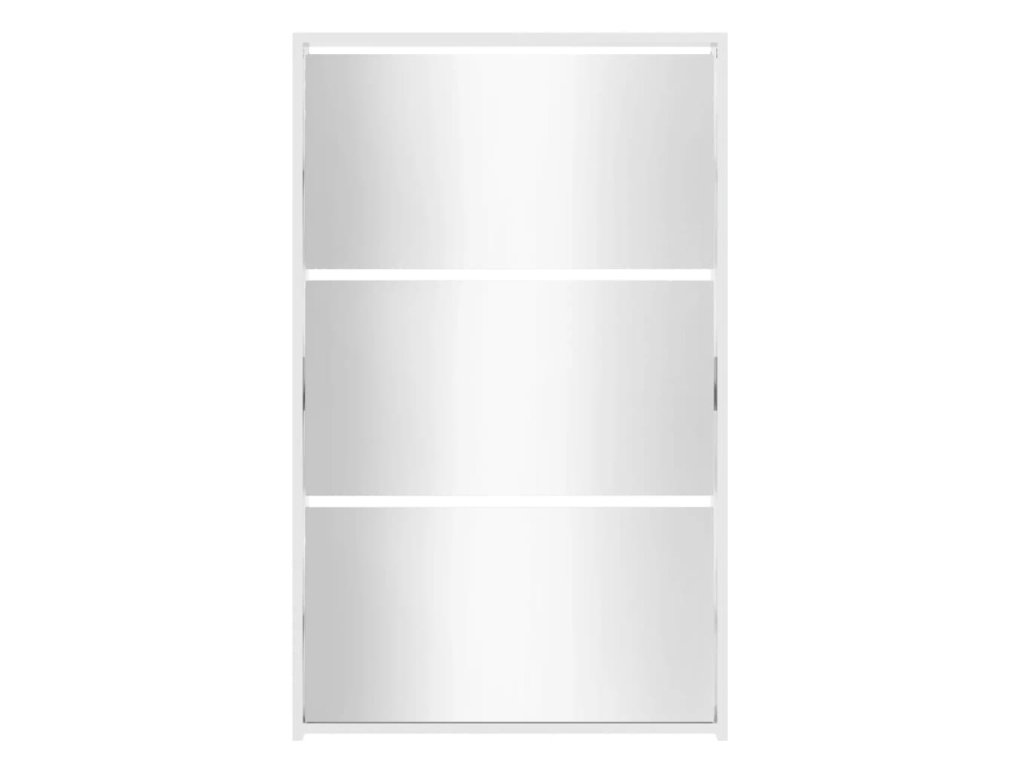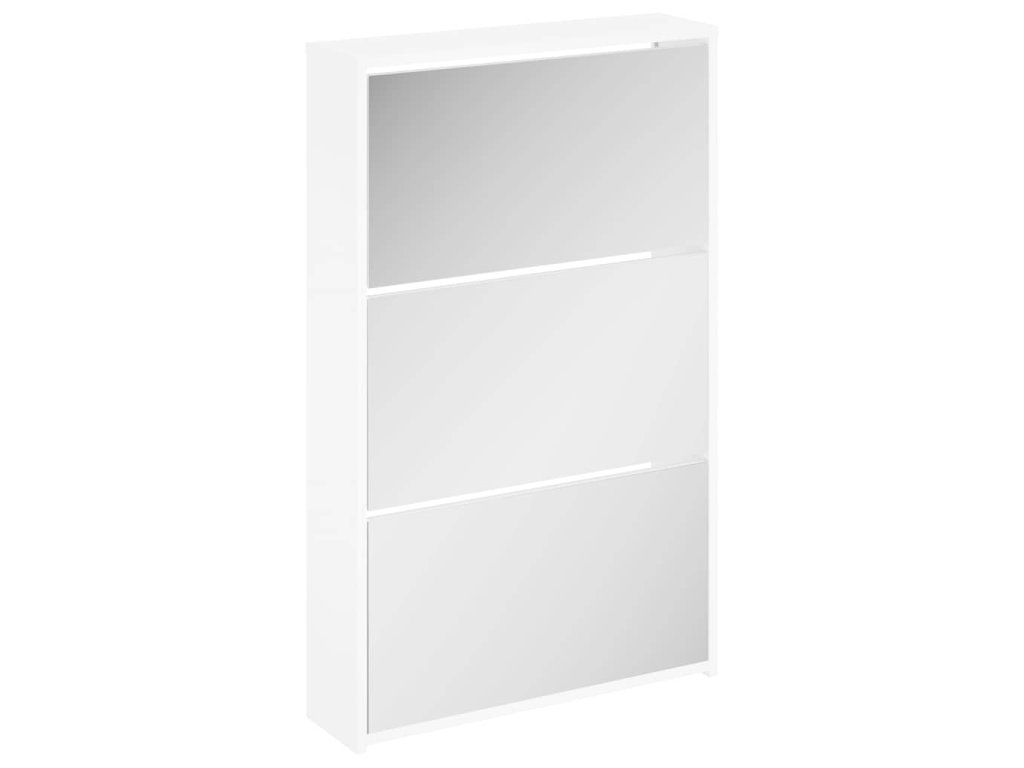 Multidom Skrinka na topánky so zrkadlom, 3-vrstvová, lesklá biela, 63x17x102,5 cm