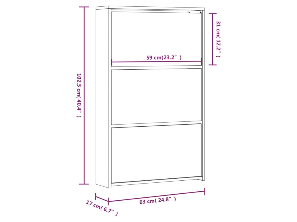 - Rozmery: 63 x 17 x 102,5 cm (Š x H x V)