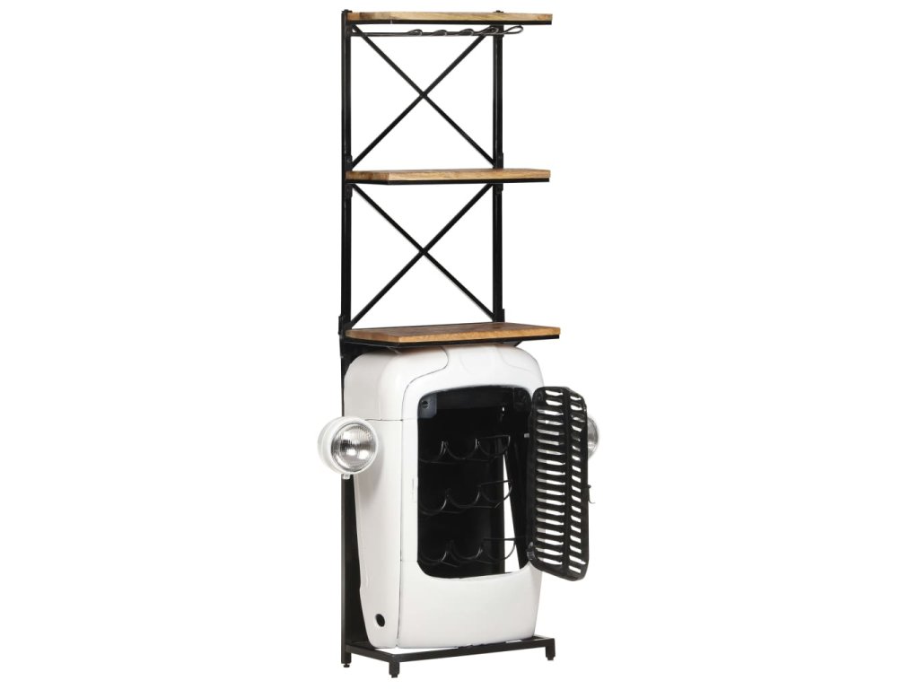 Stojan na víno je vyrobený zo surového mangového dreva, vďaka čomu je skutočne stabilný a trvácny. Mangový masív je drevo tropického listnatého stromu, ktoré je dostatočne pevné na to, aby unieslo aj značnú váhu, no zároveň odoláva každodennému opotrebovaniu. Skrinka s dizajnom traktora navyše obsahuje 2 poličky a 9 držiakov na fľaše, a tak poskytuje množstvo priestoru na odkladanie vínových fliaš či iných predmetov.