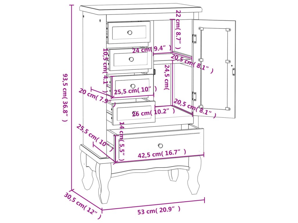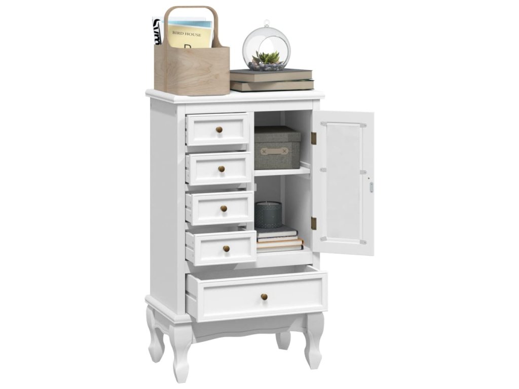 Táto skrinka so starožitným dizajnom poslúži ako skvelý organizér do kancelárie, obývačky, spálne a podobne. Predstavuje ideálny doplnok do spálne, študovne aj do chodby.