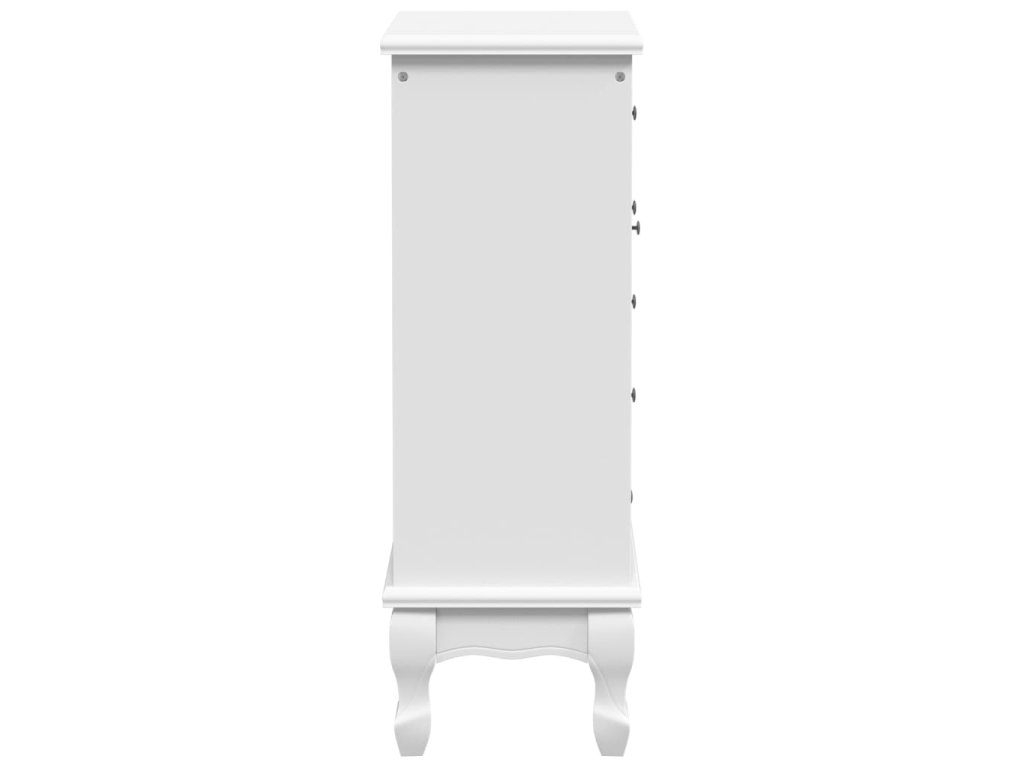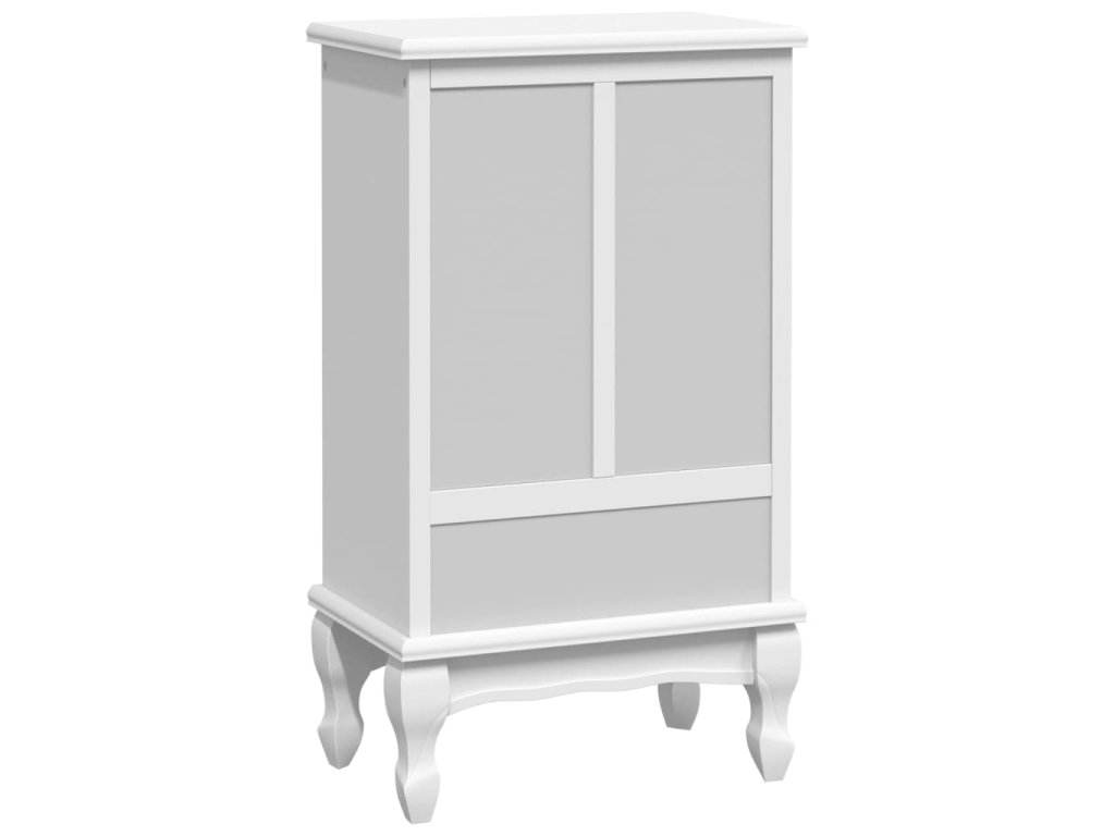 Táto skrinka je vyrobená z MDF a borovicového dreva s bielym povrchom, vďaka čomu je pevná a bude vám slúžiť dlhé roky.