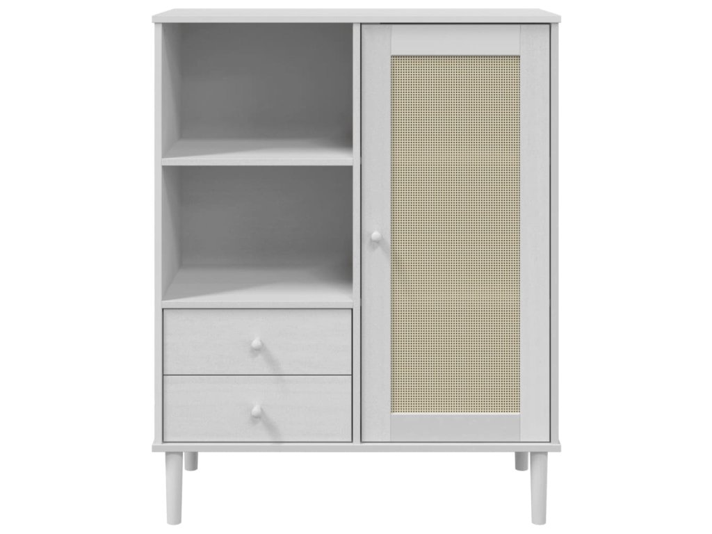 Multidom Skrinka SENJA, ratanový vzhľad, biela 90x40x112 cm, borovica