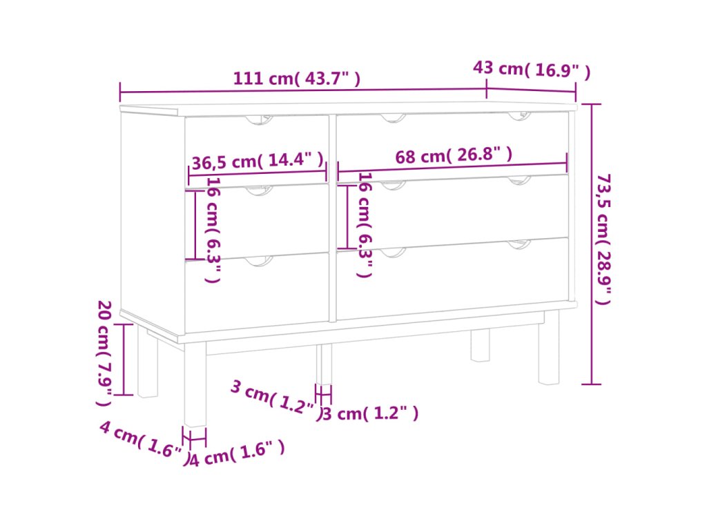 Multidom Skrinka so zásuvkami OTTA, hnedo sivá 111x43x73,5 cm, borovica