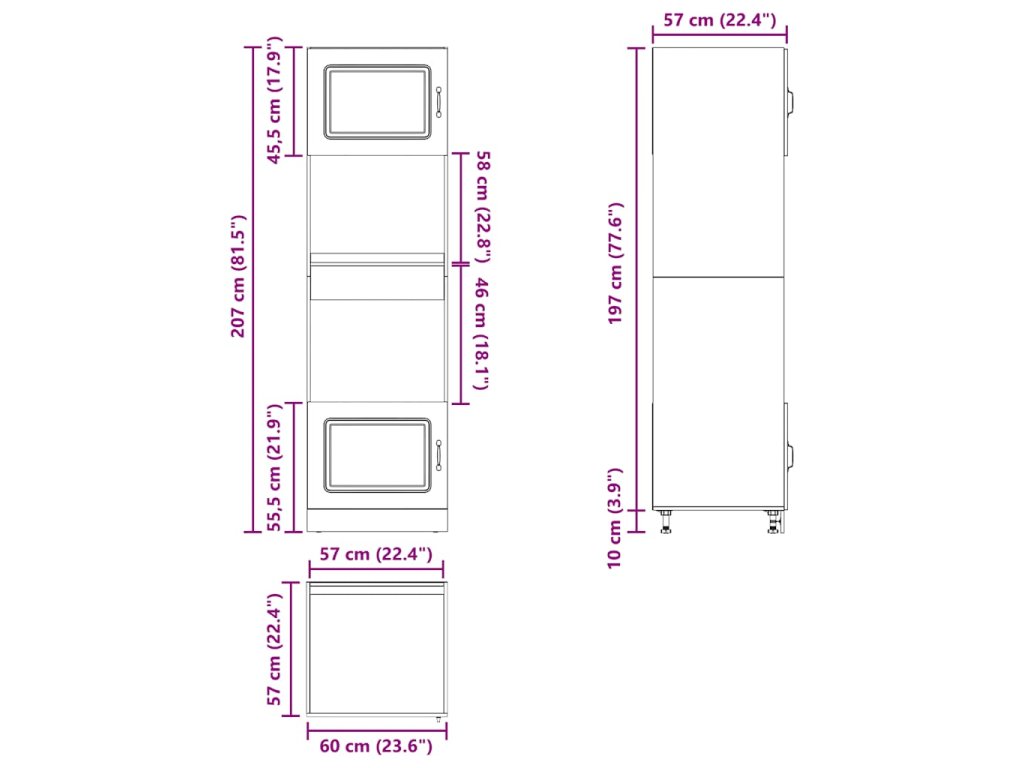 - Celkové rozmery: 60 x 57 x 207 cm (Š x H x V)