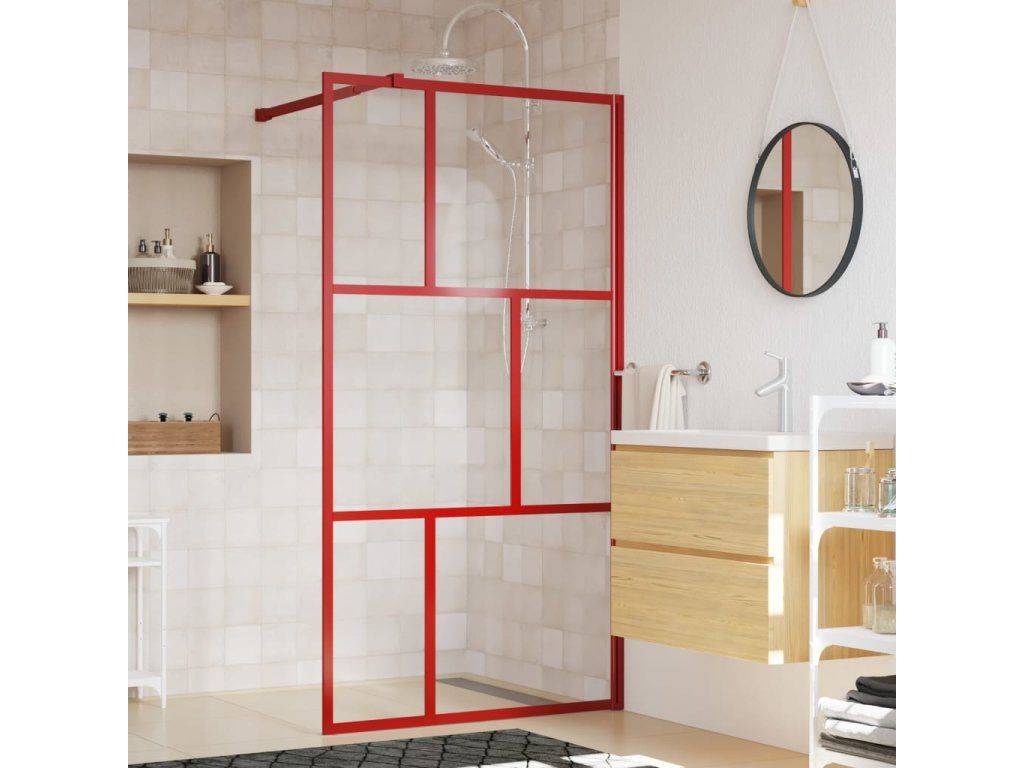 Multidom Sprchová zástena s priehľadným ESG sklom, červená 115x195 cm