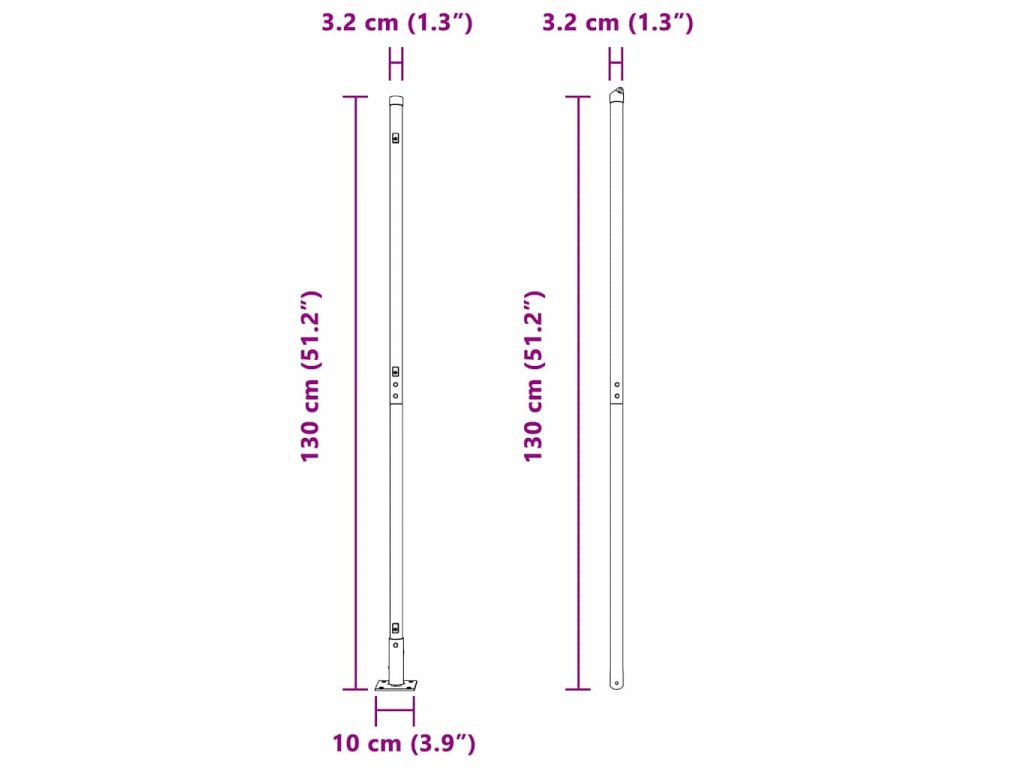- Materiály: Stĺpik je z pozinkovanej ocele s práškovým nástrekom, čo zabezpečuje jeho odolnosť. S týmto materiálom vydrží aj v najnáročnejších podmienkach a poskytuje pevnú oporu. Hladký povrch navyše zabezpečuje štýlový vzhľad a bráni opotrebovaniu.