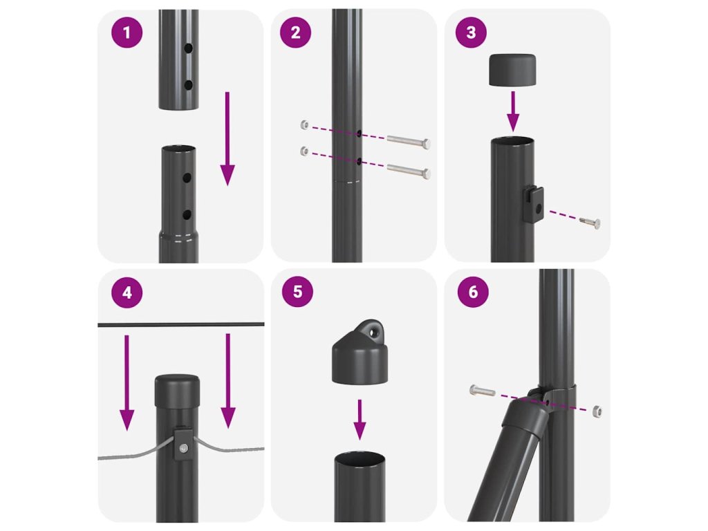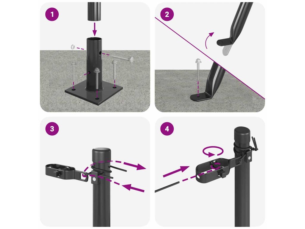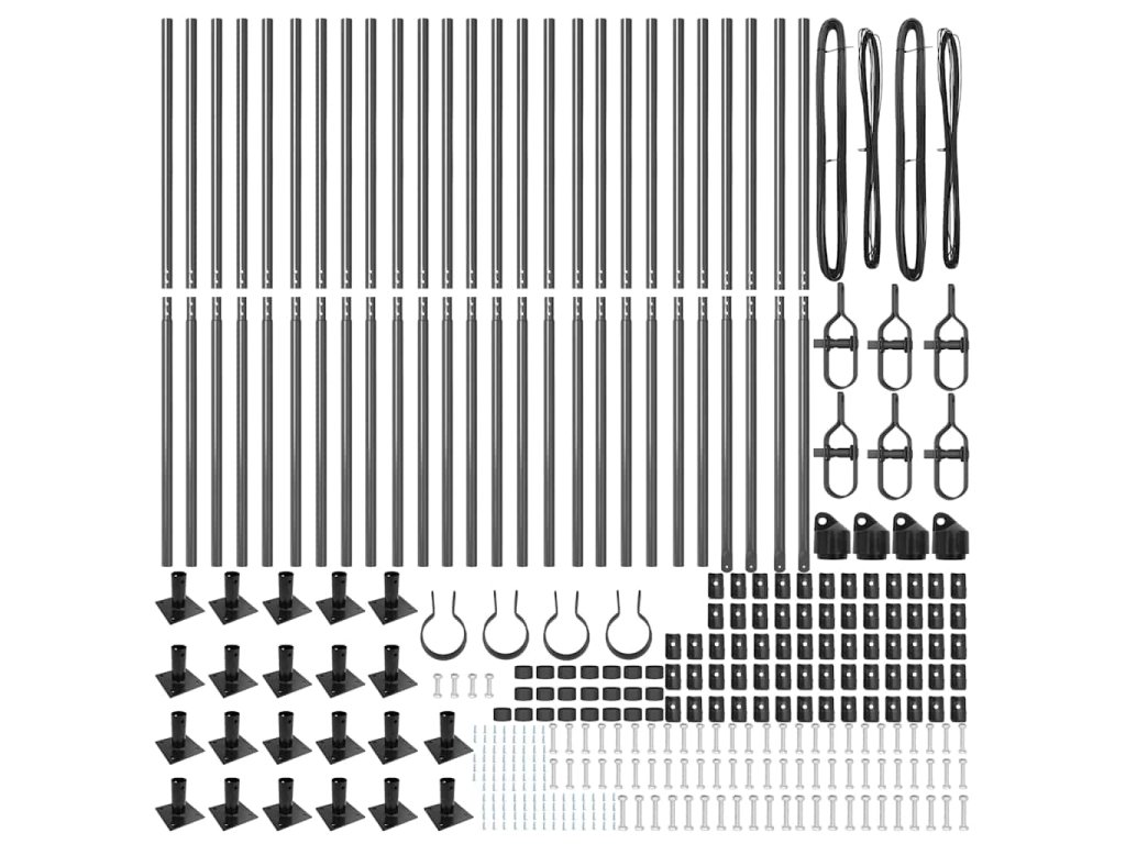 - Zahŕňané komponenty: Tento systém sa jednoducho montuje. Na inštaláciu stačí kladivo a máte hotovo. Skvelé sa hodí ku bránam a oploteniam, poskytuje stabilitu a funkčnosť v rôznych vonkajších prostrediach.