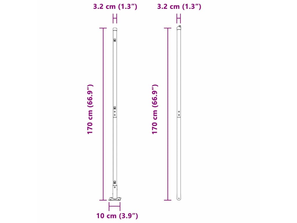 - Materiály: Stĺpik je z pozinkovanej ocele s práškovým nástrekom, čo zabezpečuje jeho odolnosť. S týmto materiálom vydrží aj v najnáročnejších podmienkach a poskytuje pevnú oporu. Hladký povrch navyše zabezpečuje štýlový vzhľad a bráni opotrebovaniu.