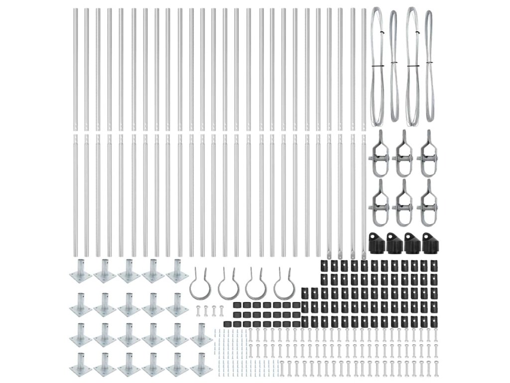 - Zahŕňané komponenty: Tento systém sa jednoducho montuje. Na inštaláciu stačí kladivo a máte hotovo. Skvelé sa hodí ku bránam a oploteniam, poskytuje stabilitu a funkčnosť v rôznych vonkajších prostrediach.