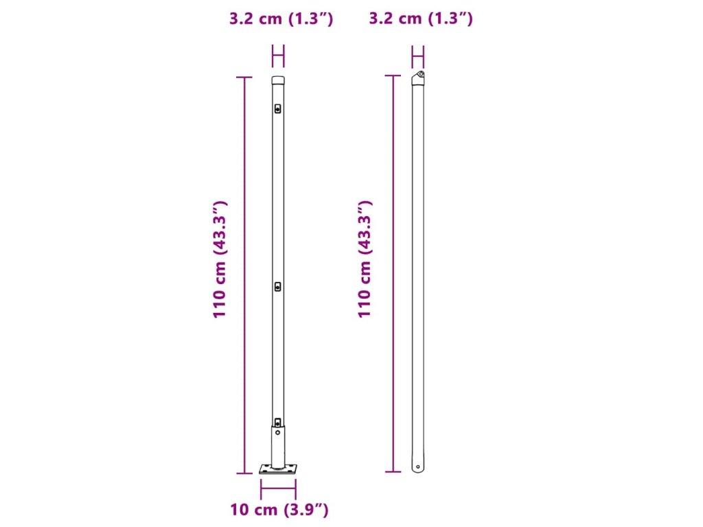 - Materiály: Stĺpik je z pozinkovanej ocele s práškovým nástrekom, čo zabezpečuje jeho odolnosť. S týmto materiálom vydrží aj v najnáročnejších podmienkach a poskytuje pevnú oporu. Hladký povrch navyše zabezpečuje štýlový vzhľad a bráni opotrebovaniu.