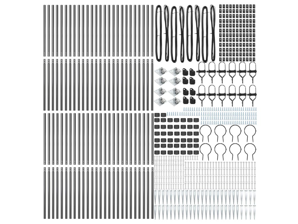 - Zahŕňané komponenty: Tento systém sa jednoducho montuje. Na inštaláciu stačí kladivo a máte hotovo. Skvelé sa hodí ku bránam a oploteniam, poskytuje stabilitu a funkčnosť v rôznych vonkajších prostrediach.