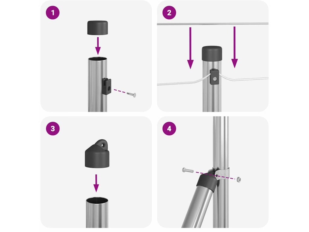 • Zahŕňané komponenty: Tento systém sa jednoducho montuje. Na inštaláciu stačí kladivo a máte hotovo. Skvelé sa hodí ku bránam a oploteniam, poskytuje stabilitu a funkčnosť v rôznych vonkajších prostrediach.