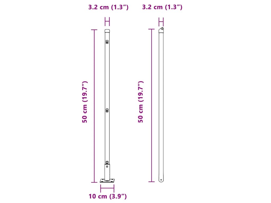- Celkové rozmery: 3,2 x 3,2 x 50 cm (D x Š x V)