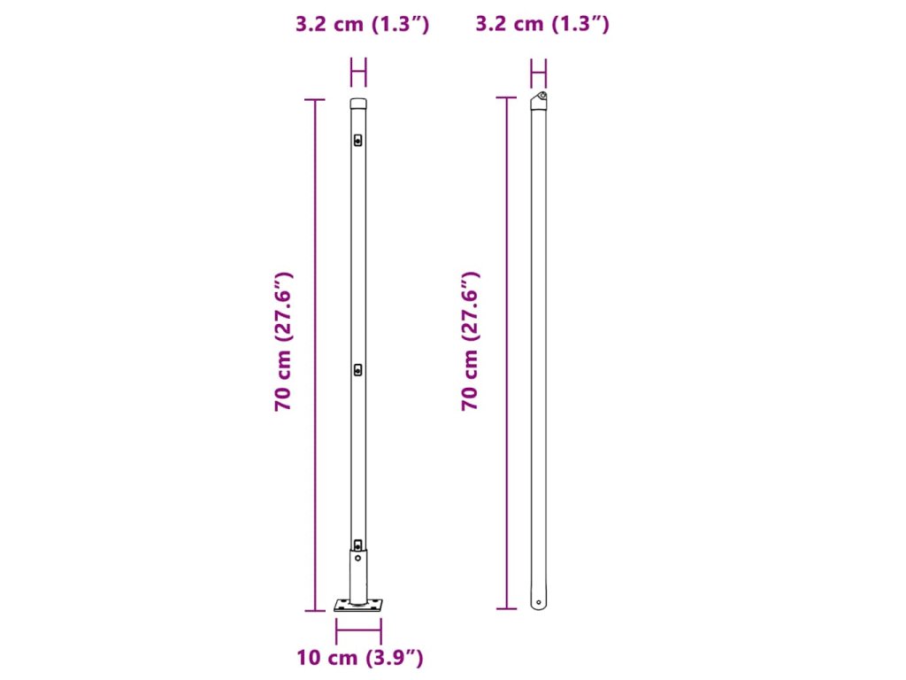- Materiály: Stĺpik je z pozinkovanej ocele s práškovým nástrekom, čo zabezpečuje jeho odolnosť. S týmto materiálom vydrží aj v najnáročnejších podmienkach a poskytuje pevnú oporu. Hladký povrch navyše zabezpečuje štýlový vzhľad a bráni opotrebovaniu.